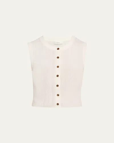 A.L.C. "Lottie" ribbed knit top Crew neckline Sleeveless Cropped fit Buttonfront Cotton Unlined Imported