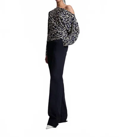 Pair this with your favorite jeans and slides for your next girls night out.Introducing the Tyler Top by A.L.C., a stylish addition to any wardrobe in a captivating navy and cream floral print. This women's blouse features long, knuckle-grazing sleeves and a one-shoulder design with draped fabric for an elegant touch. Made from a viscose blend comprising 85% viscose and 15% elastane, this top measures 19 inches in length and boasts a fluid jersey construction. It is expertly crafted as a pull-on style and requires dry cleaning for maintenance. Model is 5'9.5" and wearing a size small.