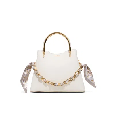 Gold-tone hoop handles rise from softly pebbled white leather, while a chunky chain with a removable silk-print scarf becomes a shoulder strap, giving this top-handle bag day-to-night flexibility. Carry it with a tailored blazer for coffee briefings or sling it over a slip dress at evening weddings to polish the look. - ALDO. Color: White.