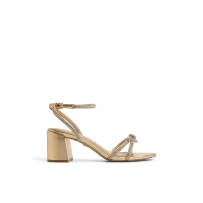 Going to prom or attending a wedding? These strappy heeled sandals boast an adorable bow detail, dazzling rhinestones and a silver metallic finish. Gender: FEMALE;Color: Gold;Category: Women > Footwear > Heels > Block heels