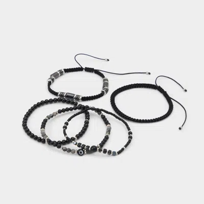 A five-piece bracelet set mixes matte beads, hematite-toned spacers, and braided cord for a laid-back vibe, with adjustable strands that can be worn solo or together. Pair it with a watch for coffee runs or layer all five at patio hangs for relaxed energy. - ALDO. Color: Grey.