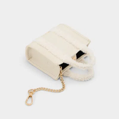 Plush faux-fur handles add a cuddle-soft contrast to this micro leather bag, with a gleaming chain that lets the creamy flap silhouette swing hands-free and light as air, just roomy enough for cards, gloss, and big plans. Pair it with a slouchy sweater and tall boots for coffee runs or sling it over a satin slip at rooftop parties. - ALDO. Color: Bone.