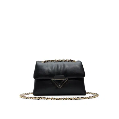 Pillow-soft black leather drapes a chain-draped crossbody, anchored by a sculpted triangle clasp that lends night-owl polish and plush confidence, turning everyday errands into a walk-on style stage for city nights and brunch runs. Hidden magnets snap shut for secure carry, while you sling it with a slip dress or tuck it beside a blazer. - ALDO. Color: Black.