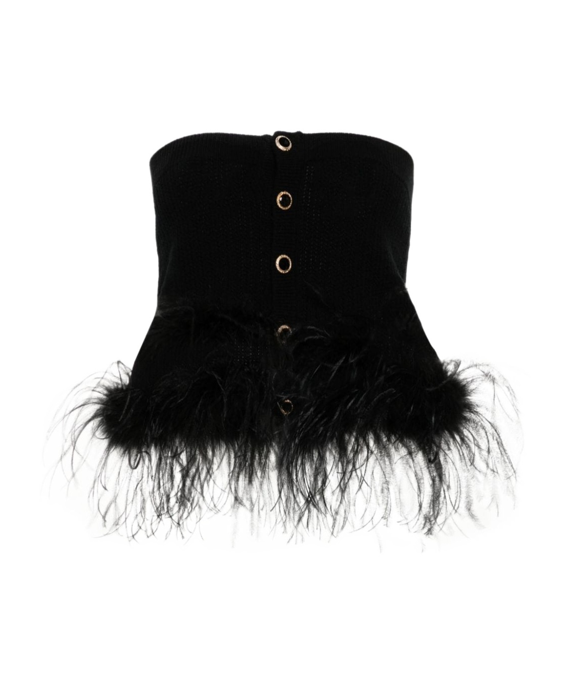 ALESSANDRA RICH Feather-accented Wool Top With Button Detail And Sophisticated Design In Black