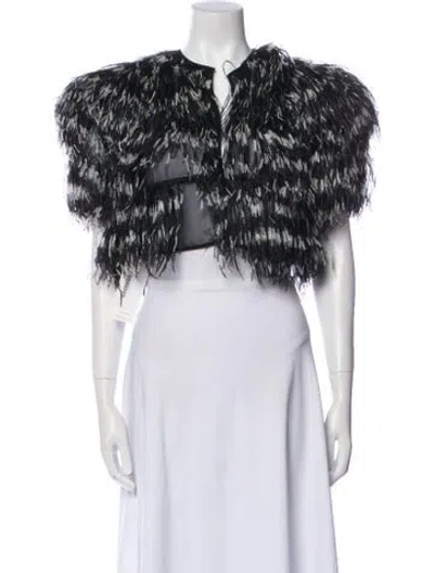 Alessandro Dell'Acqua Nylon Down Jacket Black & White Printed Feather Trim & Collarless Open Front Fit: Jackets by Alessandro Dell'Acqua typically fit true to size. | Alessandro Dell'Acqua Nylon Printed Down Jacket in Black/White, Women's US4, IT40 | S