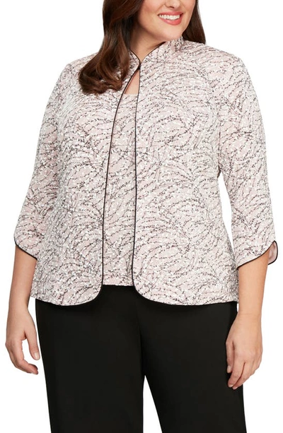 ALEX EVENINGS Foiled Print Twinset In Shell Pink