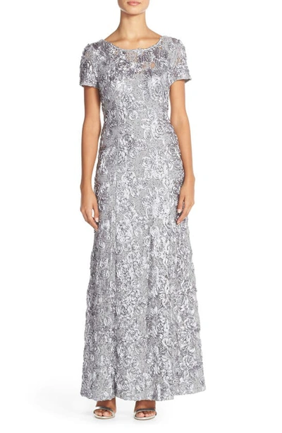 ALEX EVENINGS Long A-line Rosette And Sequin Gown In Dove