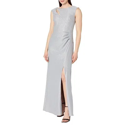 ALEX EVENINGS Maxi Dress Women's Platinum Cutout Sleeveless Side Slit Gbo1325 In Gray