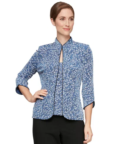ALEX EVENINGS Printed Jacket And Top Set, Regular & Petite Sizes In Blue