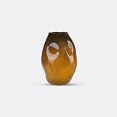 Mouth-blown and free-hand sculpted, this exquisite example of European glassmaking is part of a portfolio of objects created for limited series and bespoke installations. Alexa Lixfeld's 'Meteorite' vase in camouflage canyon captures the essence of molten glass in impressions, indentations, and an undulating opening. Pigment shifts through deep desert colors until it reaches a dramatic, dark rim. The glowing surface reflects the light in a transfixing design that feels organic yet beguilingly unfamiliar. Subtle marks in the glass, such as bubbling and planing, reflect the artisanal process that makes each vase unique.