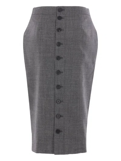 ALEXANDER MCQUEEN Button-front Wool Skirt In Gray