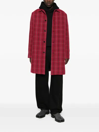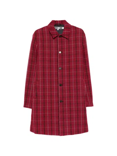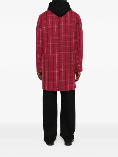 Pre-owned Check Button Coat In Red