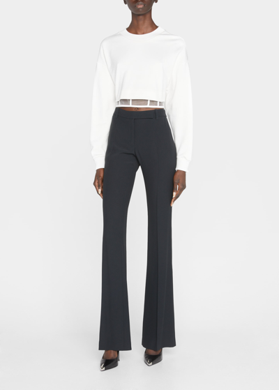 Alexander McQueen classic suiting pant. Mid rise. Slim fit through boot cut legs. Full length. Tab/zip fly belt loops. Viscose/acetate. Made in Italy.