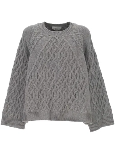 Grey cable knit wide sleeves crew neck wool blend relaxed fit