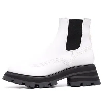 Step into style with these effortlessly chic ankle boots, perfect for any fashion-forward wardrobe. Crafted from luxurious leather, these boots boast a striking black and white color scheme, embodying the innovative spirit of Alexander McQueen. Ideal for adding a touch of elegance to any outfit, their Italian craftsmanship ensures both comfort and durability. Elevate your shoe collection with this exquisite pair.Material: LeatherCountry of Origin: ITColor: Black and White