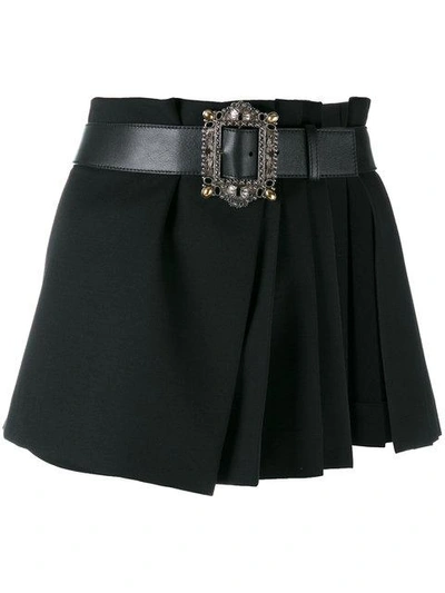 Pleated Grain De Poudre Wool Wrap Mini Skirt