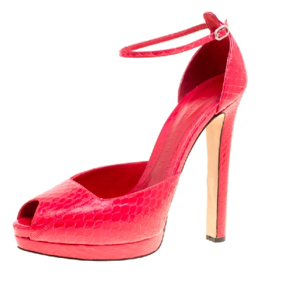 Pre-owned Red Python Peep Toe Ankle Strap Platform Sandals Size 40