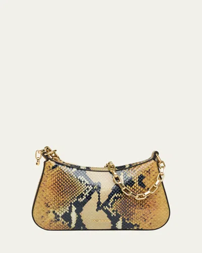 T-bar Python-embossed Leather Mini Pouch Bag In Brown