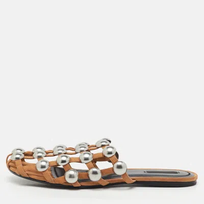 ALEXANDER WANG Beige Suede Amelia Flat Mules In Brown