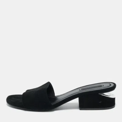 ALEXANDER WANG Black Suede Cut-out Block Heel Slide Sandals