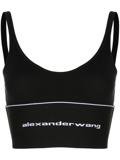 ALEXANDER WANG Logo Elasticated-hem Bra In Black