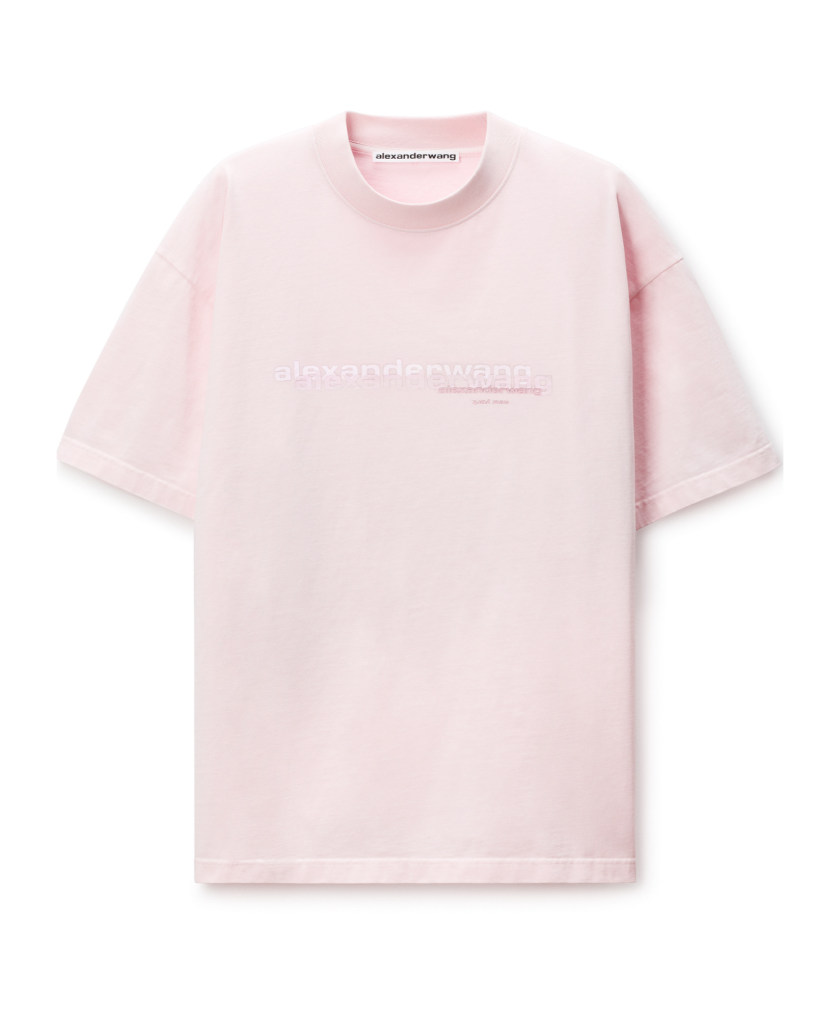 This oversized light pink T-shirt by Alexander Wang combines casual style with a striking aesthetic. The soft 100% cotton fabric ensures comfort, while the relaxed fit and classic crew neckline enhance its versatility. A bold front logo adds a contemporary touch, making it perfect for layering or wearing on its own. An essential piece for any wardrobe. 100% cotton composition Relaxed fit Classic crew neckline Bold front logo Oversized design