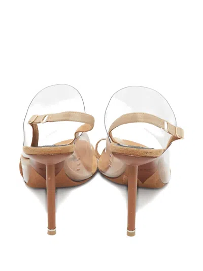 beige suede slingback strap stiletto heel thong style Condition: GOOD. This previously owned and used item is in good condition with minimal signs of use. This may include fading of material or plating and scratches.