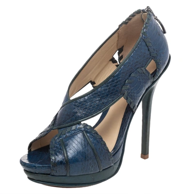 Pre-owned Blue/green Python And Leather Peep Toe Platform Pumps Size 38