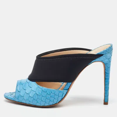 Pre-owned Light Blue/black Python Leather And Neoprene Mules Size 37