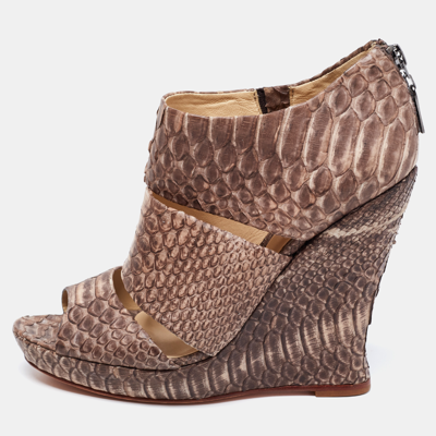 Pre-owned Two-tone Python Leather Wedge Sandals Size 36 In Beige