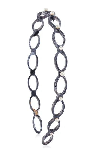 Alexandre de Paris hair accessories are all crafted by hand in France; in the label's workshop. The pearls headband is thoroughly handmade in France in our workshop. It is made from acetate; a material with a natural heirloom; born from cotton flower and wooden pulp; hair friendly at heart. For your comfort; it is geared with small rubber teeth; to stay put with the utter softness. It features some Swarovski pearls.