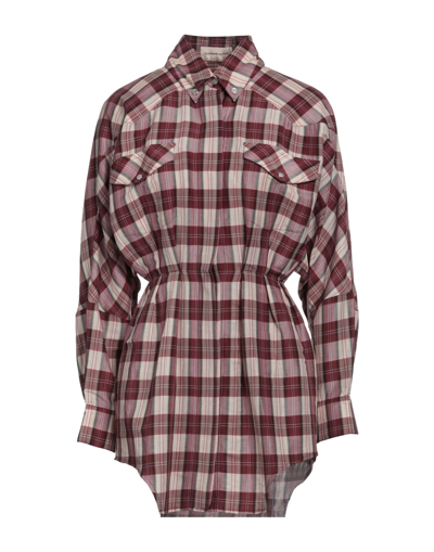 plain weave, no appliqués, checked, classic neckline, long sleeves, snap button cuffs, unlined, snap buttons fastening, two breast pockets, shirt dress , Color: Burgundy , Size: 2