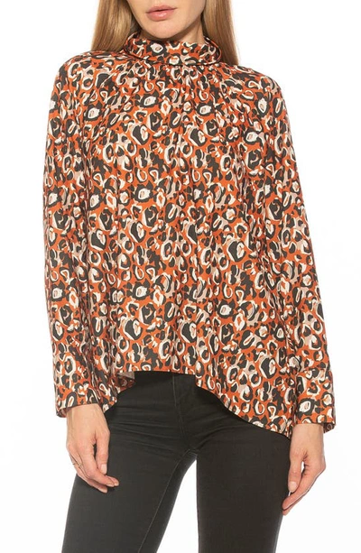 ALEXIA ADMOR Danielle Draped Blouse In Leopard Multi