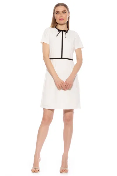 FINAL SALEDiscover the understated elegance of the Eira Dress. This mini dress features a classic crewneck and short sleeves, accented by a contrast trim that adds a touch of sophistication. Complete the look with the delicate bow on the collar, making this dress a must-have for any fashion-forward wardrobe. Crewneck Bow on the neckline Contrast Lining Fit and Flare Mini Dress 95% Polyester 5% Spandex, Lining - 100% Polyester Machine Wash, Tumble Dry Imported Style D5088