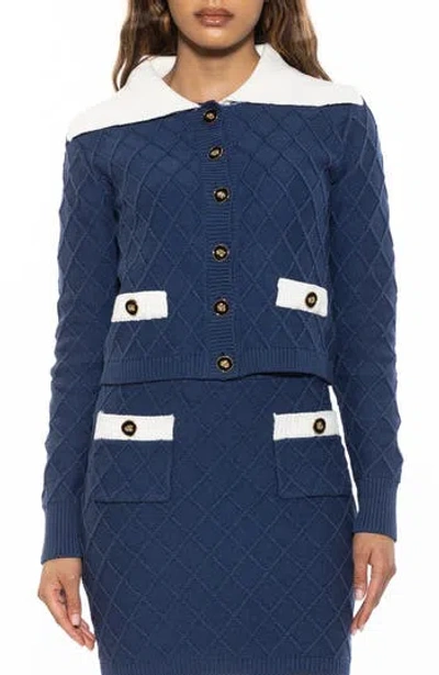 ALEXIA ADMOR Pattern Cardigan In Denim Blue