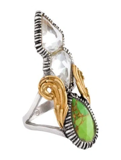 10K Gold-Plated, Palladium-Plated & Brass Green Stone & Crystal | Alexis Bittar Elongated Olmeca Ring, Women's 6.75