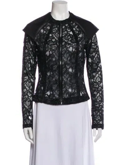 Alexis Evening Jacket Black Lace Pattern Lace Trim Embellishment & Stand Collar Fit: Jackets by Alexis typically fit true to size. | Alexis Lace Pattern Evening Jacket in Black, Women's M