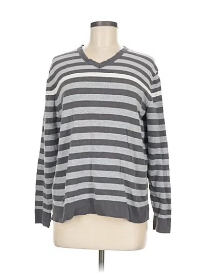 Alfani Pullover Sweater, Size: Medium. Item Details: Gray, Stripes Pattern, V Neck, Long Sleeve, Women's Tops, Cotton/Nylon