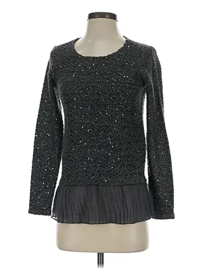 Alfani Pullover Sweater Item Details: Silver, Metallic Pattern, Ruffles Neckline, Long Sleeve, Glitter, Women's Tops