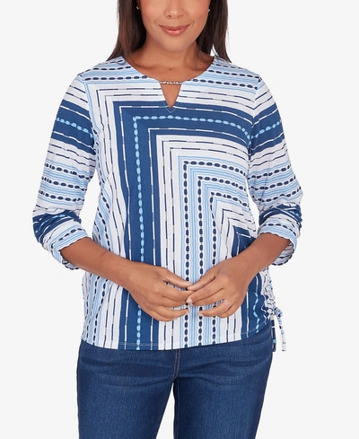 ALFRED DUNNER Plus Size In Full Bloom Spliced Texture Stripe Side Tie Top In Multi