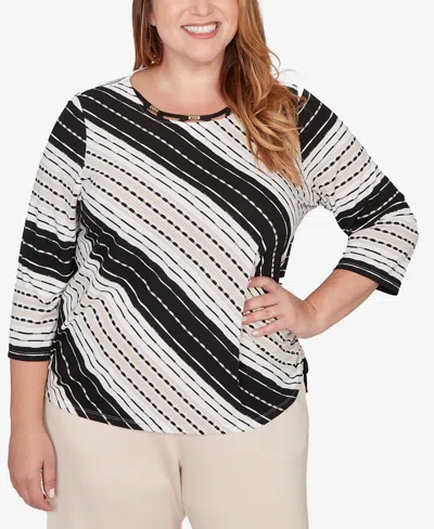 ALFRED DUNNER Plus Size Seville Embellished Diagonal Textured Stripe Top In Multi