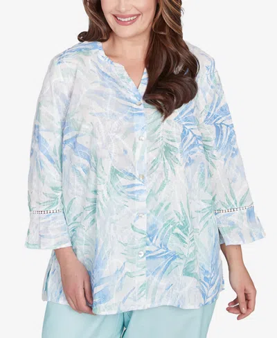 ALFRED DUNNER Plus Size St. Thomas Tropical Embroidered Button Front Top In Multi