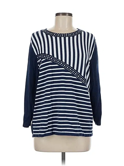 Alfred Dunner Pullover Sweater, Size: Medium. Item Details: Blue, Scoop Neck, 3/4 Sleeve, Women's Tops