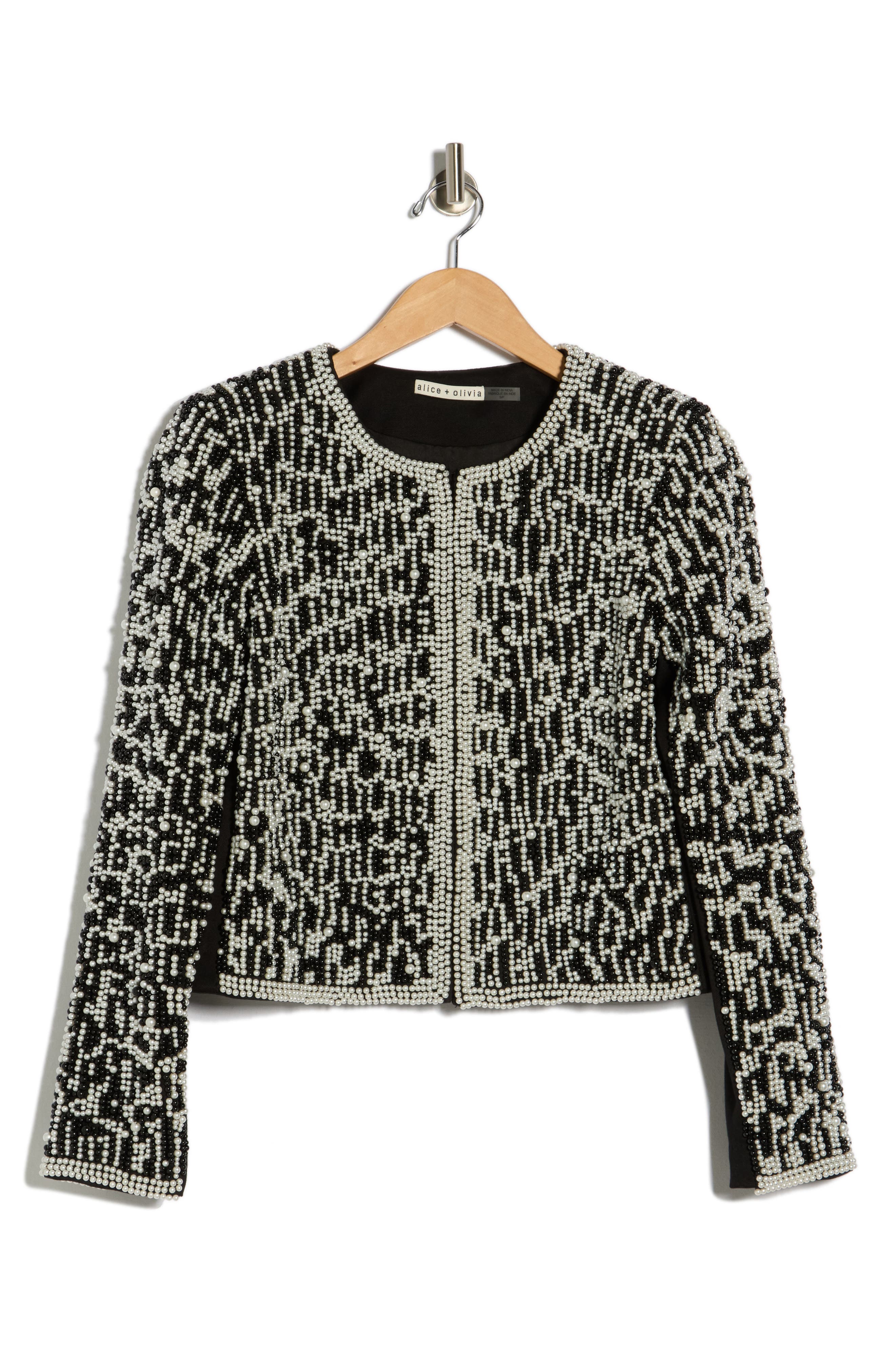 ALICE AND OLIVIA Alice + Olivia Kidman Pearly Beaded Boxy Crop Jacket In Multi