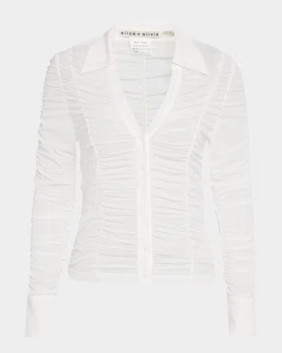 ALICE AND OLIVIA Portia Fitted Mesh Button-front Shirt In Off White