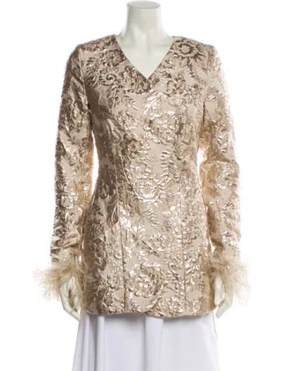 Alice McCall Down Jacket Neutrals Printed Feather & Glitter Accents Collarless Slit Pockets & Snap Closure Fit: Jackets by Alice McCall typically fit true to size. | Alice McCall Printed Down Jacket in Neutrals, Women's XS