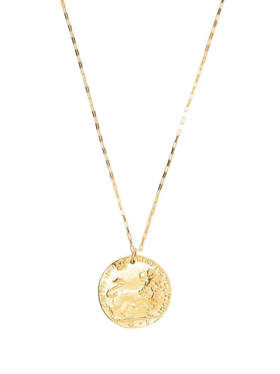 24kt gold-plated bronze Il Leone medallion necklace from Alighieri featuring medallion pendant, cable-link chain and spring-ring fastening.