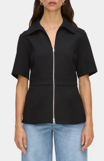Fabric: Mid-weight ponte knit with stretch. Banded waist. Collared neck. Short sleeves. Two-way zip closure. Shell: 71% modal/25% polyamide/4% elastane. Wash cold. Imported, China. Measurements: Measurements from size 0 Length: 23.5in / 60.0cm, from shoulder