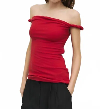 A timeless blouse that will never go out of style.Enhance your wardrobe with the Alix Off-shoulder Top by all - row, a perfect blend of style and comfort for women. This sleeveless red top is crafted from a lightweight 80% Tencel and 20% wool blend, offering a soft and breathable feel. Designed with a form-fitting, double-layered bodice and a chic twisted shoulder detail, it creates a flattering, seamless silhouette. Closure is pull-on, and it is machine washable, making it a practical yet stylish choice for Valentine's Day dinners and spring gatherings.