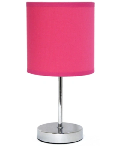 Simple Designs Chrome Mini Basic Table Lamp With Fabric Shade In Pink